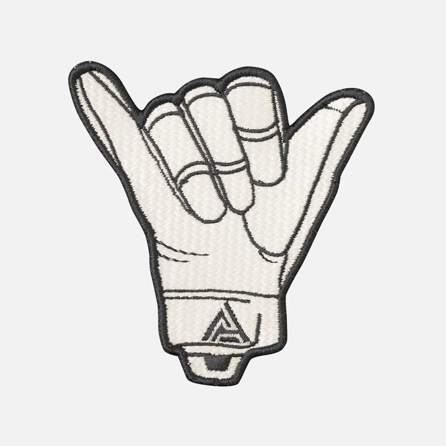 Нашивка с вышивкой в форме жеста шака. Нашивка также снабжена крючком и петлей для крепления к снаряжению или одежде.
