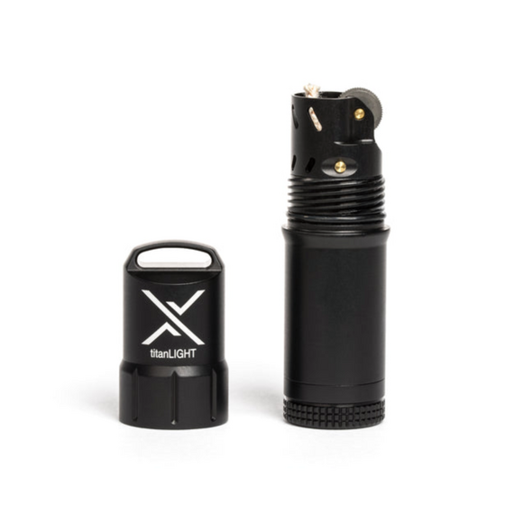 Зажигалка Exotac TITANLIGHT™ - это многоразовая водонепроницаемая зажигалка, использующая жидкое топливо. Изготовленная из алюминия, используемого в авиации, она позволяет комфортно работать в лесу в течение многих лет. Благодаря отверстию для шнурка ее легко носить с собой. Благодаря использованию двух резиновых уплотнений зажигалка водонепроницаема до глубины одного метра. Уплотнения также предотвращают испарение топлива. Зажигалка заполняется через нижний колпачок. Открутив ее, налейте внутрь около 3 миллилитров топлива. Съемный кремень в комплекте. Сделано в США.