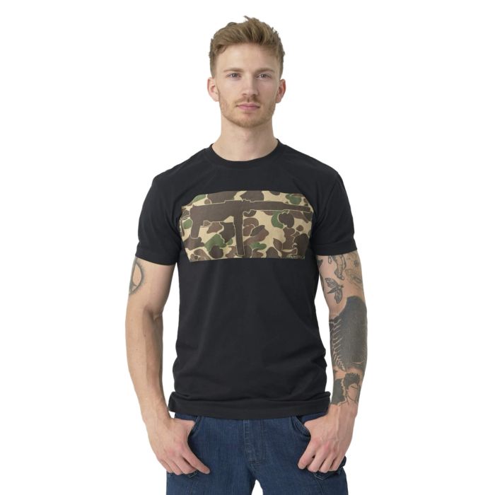 Классическая хлопковая футболка с обычной посадкой. Форма винтовки и Duck Hunter напоминают о военных корнях нашей компании. Отличительная форма футболок возникла в начале 20 века из прежнего нижнего белья (известного как union suit). После Второй мировой войны хлопковые футболки в форме буквы T стали очень популярны, отчасти благодаря Марлону Брандо и Джеймсу Дину, которые носили их на экране.